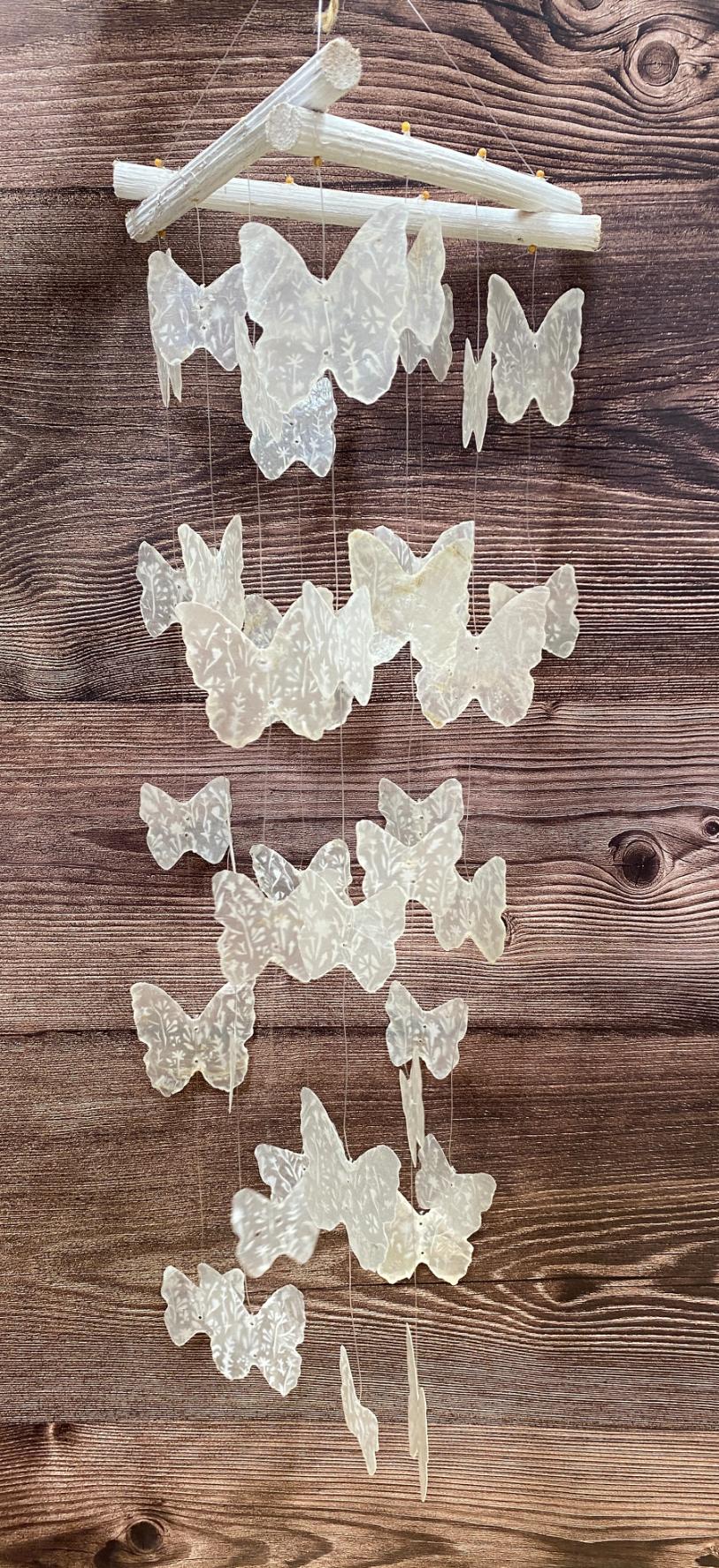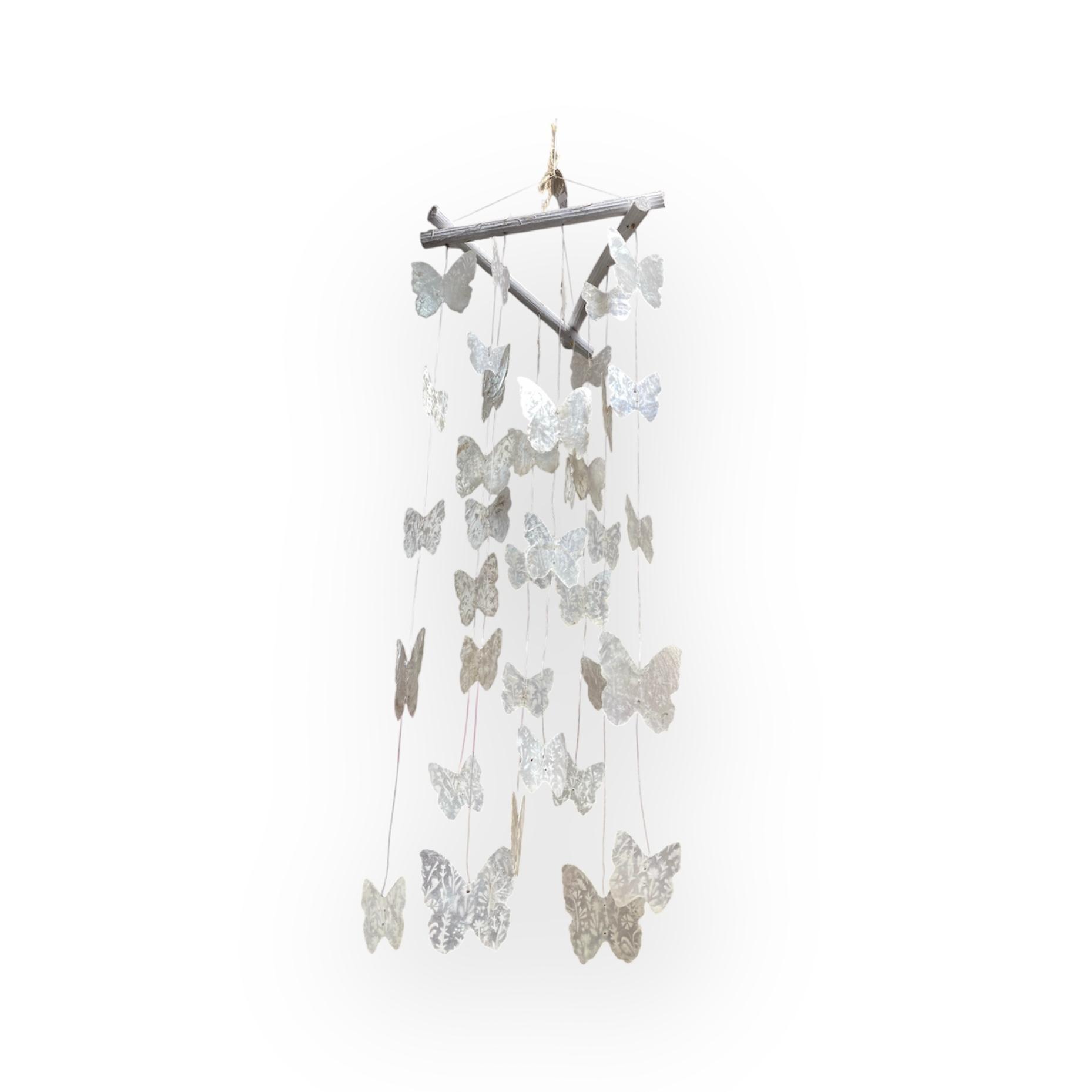 • Con fili trasparenti su cui sono appese tante farfalle bianche in madreperla