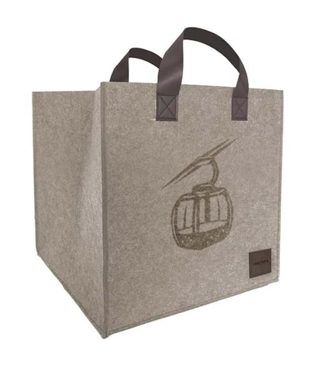 • Borsa in feltro con disegno di una cabina di funivia e dettagli in pelle
