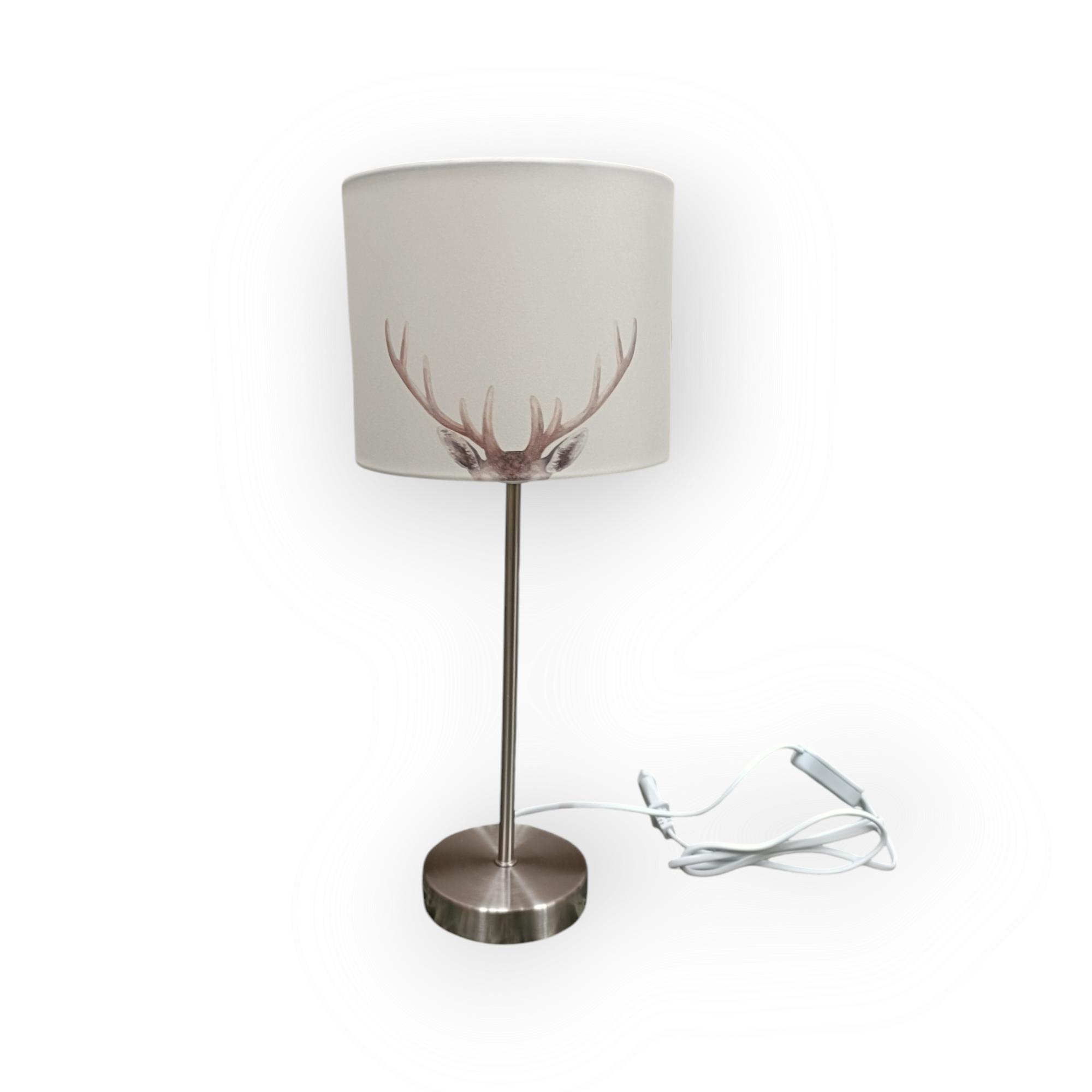 • Il paralume color bianco panna ha la stampa dei palchi di cervo lungo tutto il perimetro inferiore