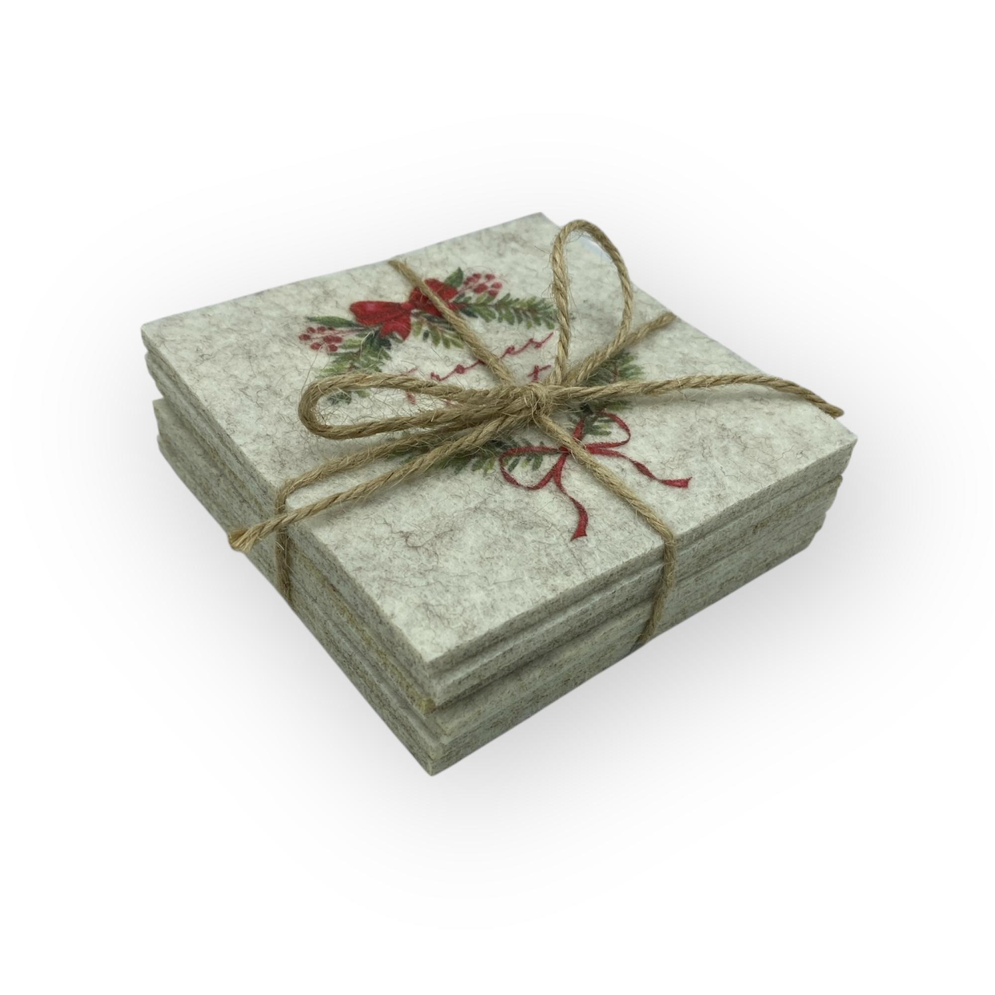 • La stampa è composta dalla scritta in rosso con decorazioni natalizie a rifinire